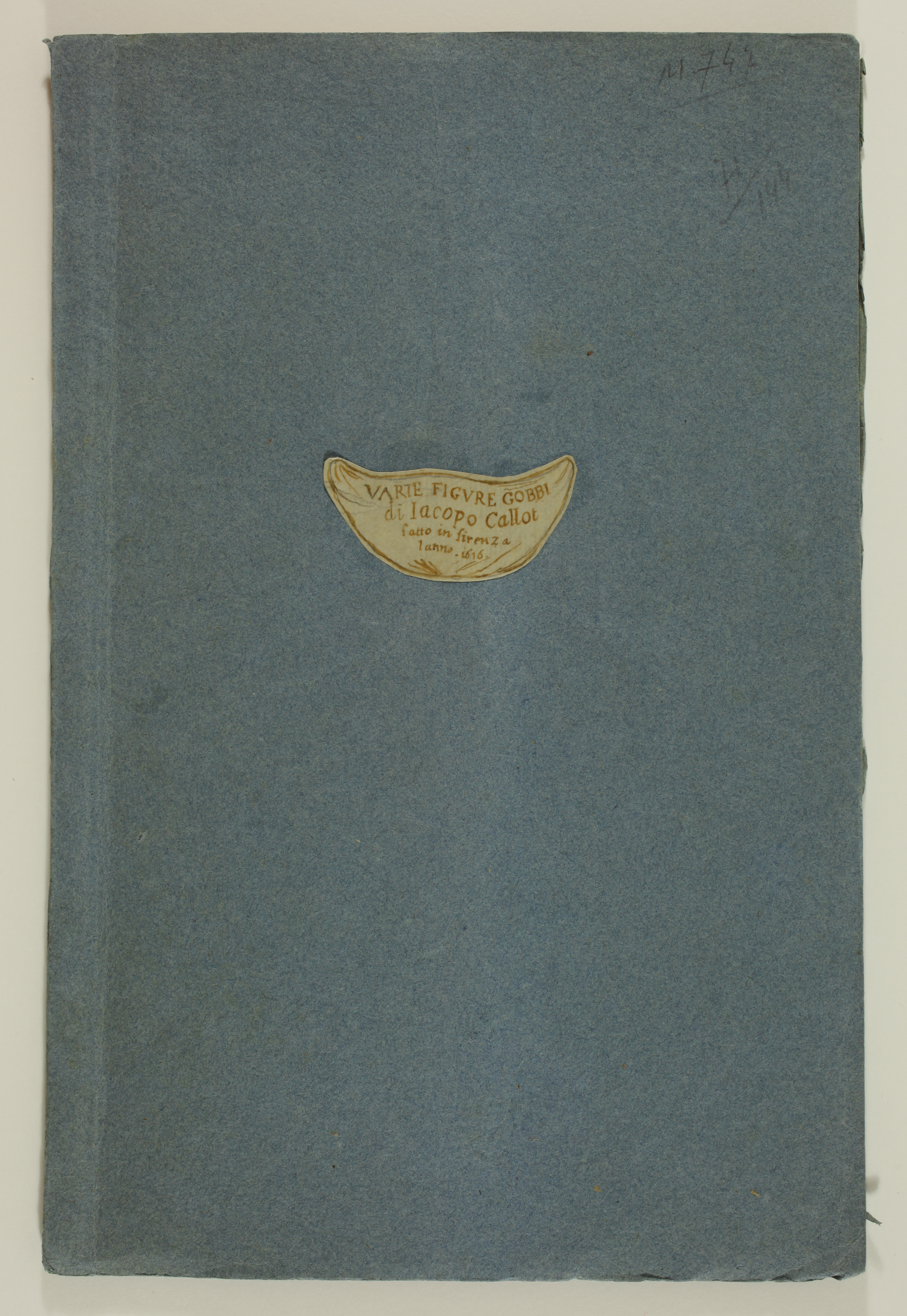 Très belles épreuves imprimées sur papier vergé. Toutes les planches sont montées par deux petites charnières de papier sur feuillets de papier vergé filigrané (couronne, lettres C et D, cloche ; petite étoile) réunis en un cahier sous couverture de papier vergé bleu. La couverture porte une pièce de titre qui reproduit le cartouche de la planche de titre de la série, avec l’inscription manuscrite VARIE FIGURE GOBBI di Iacopo Callot fatto in firenza l anno 1616.