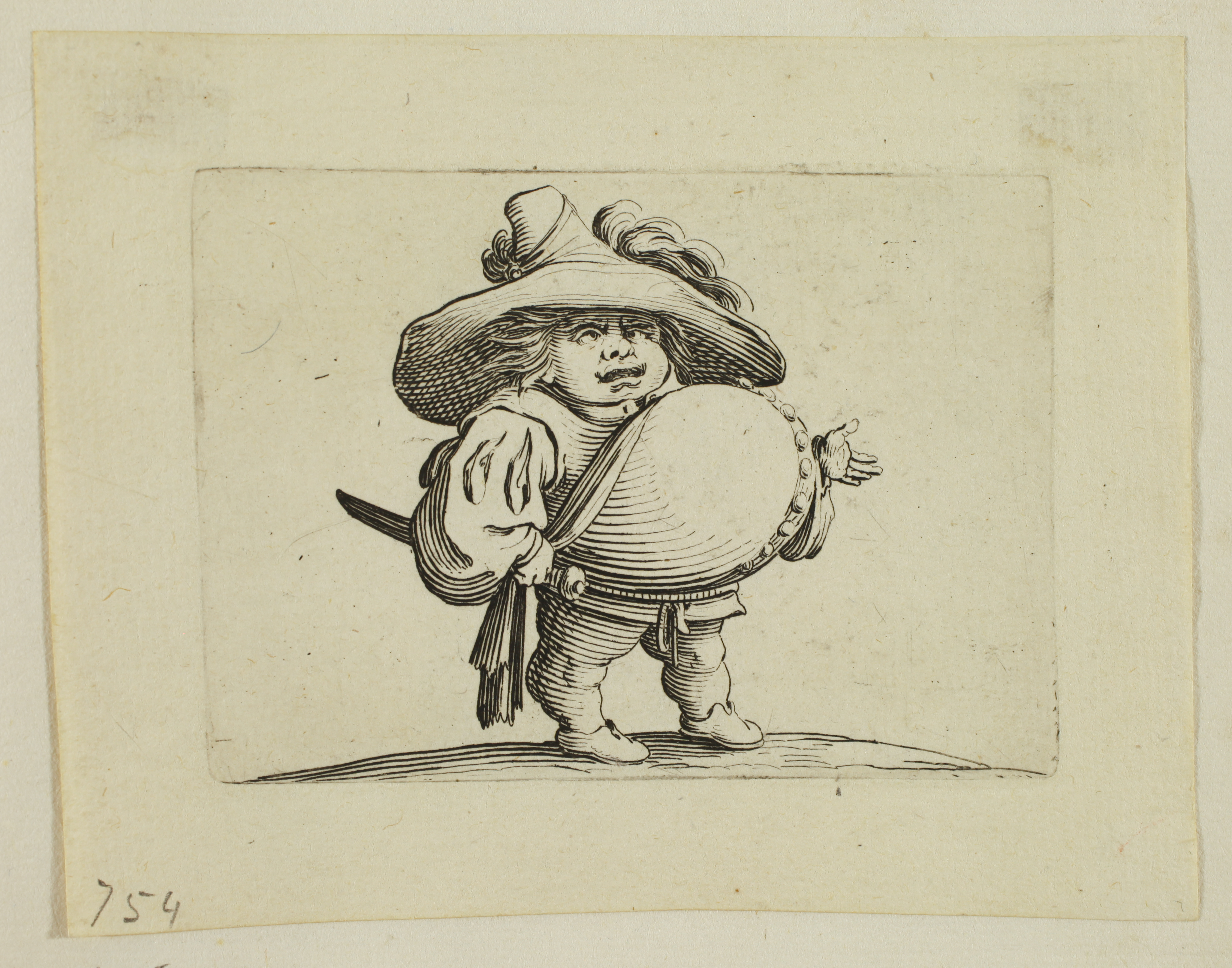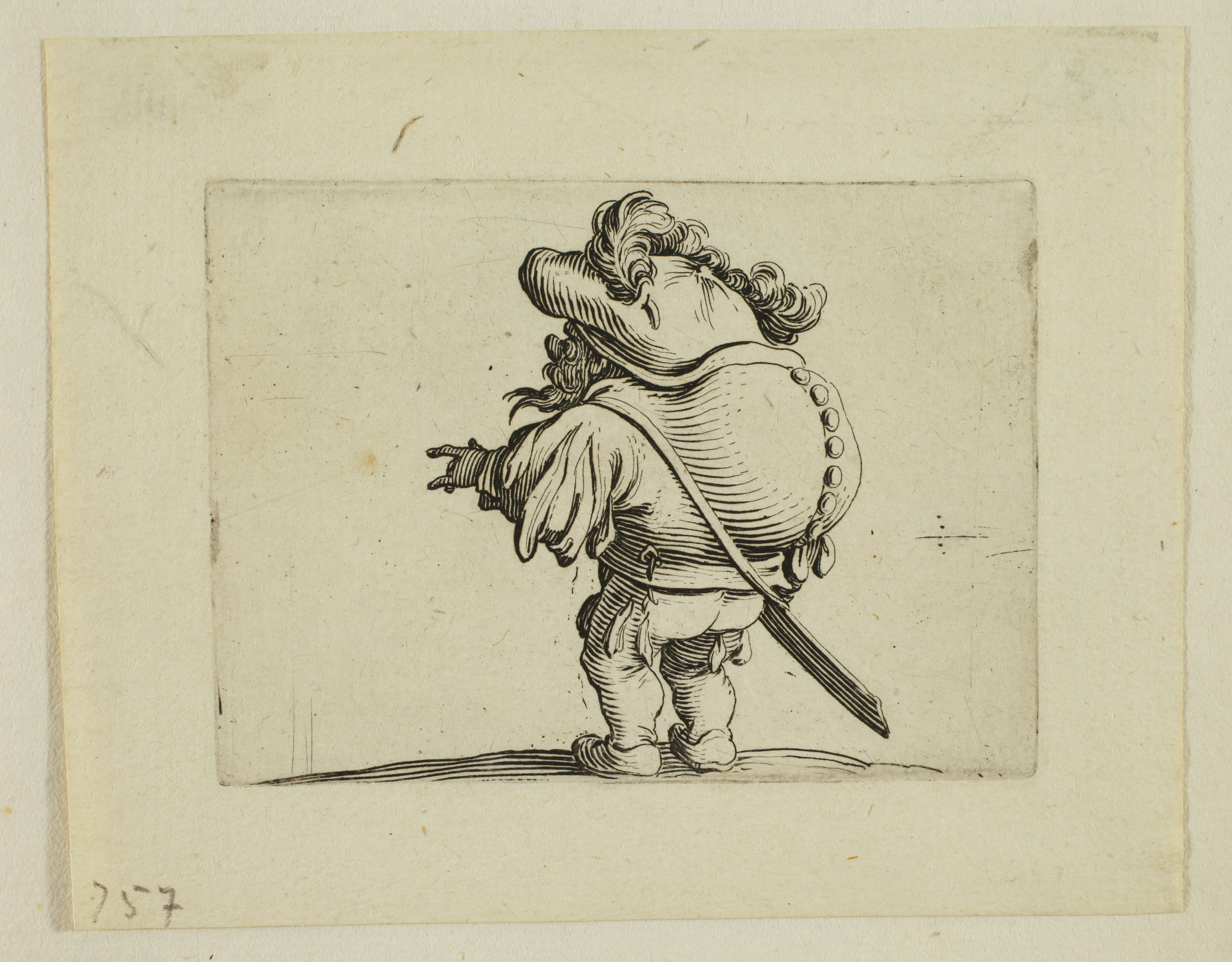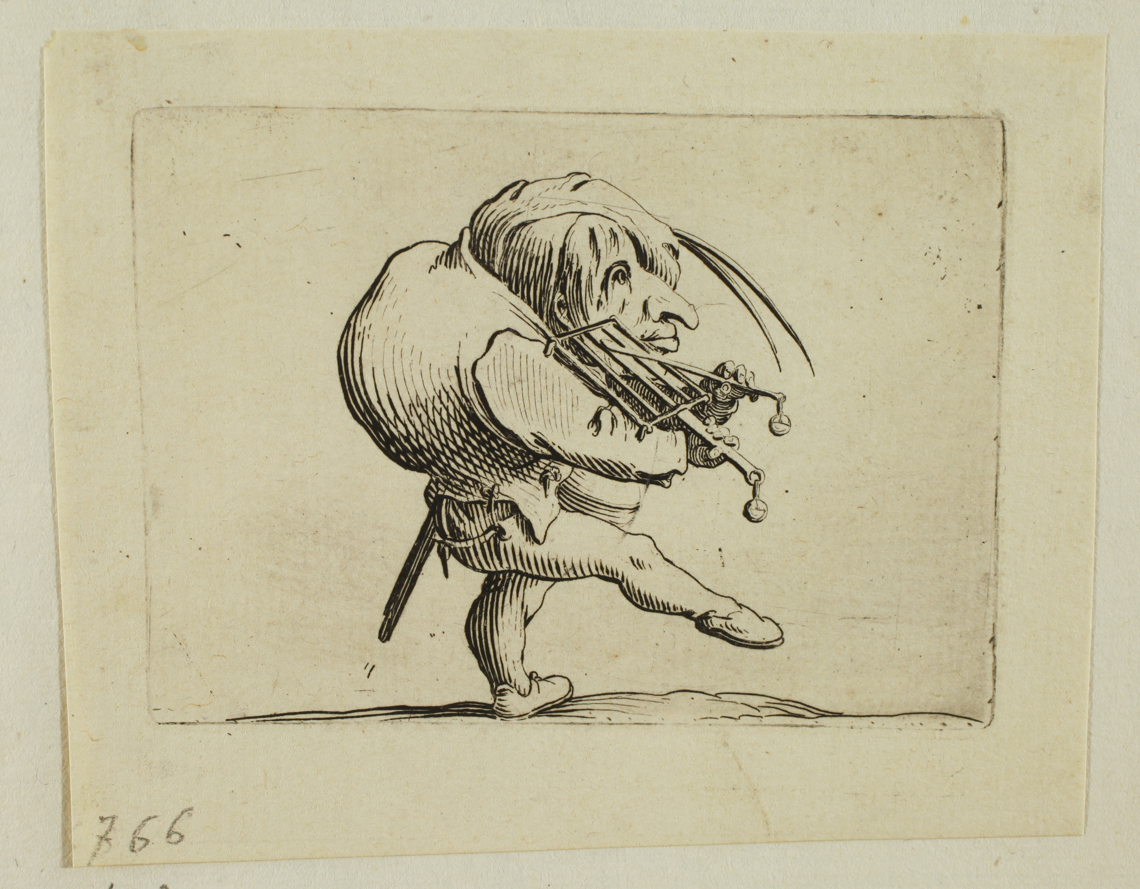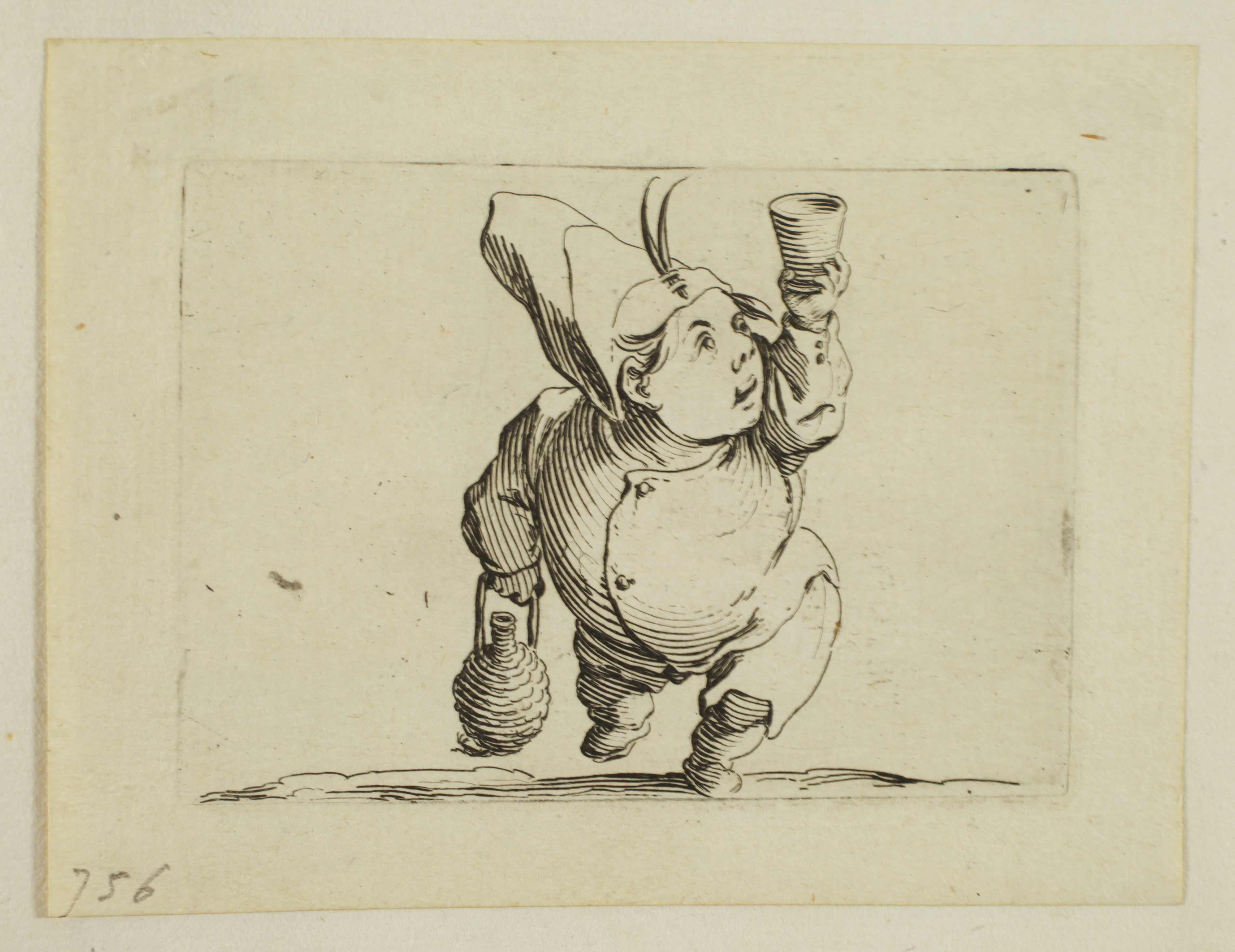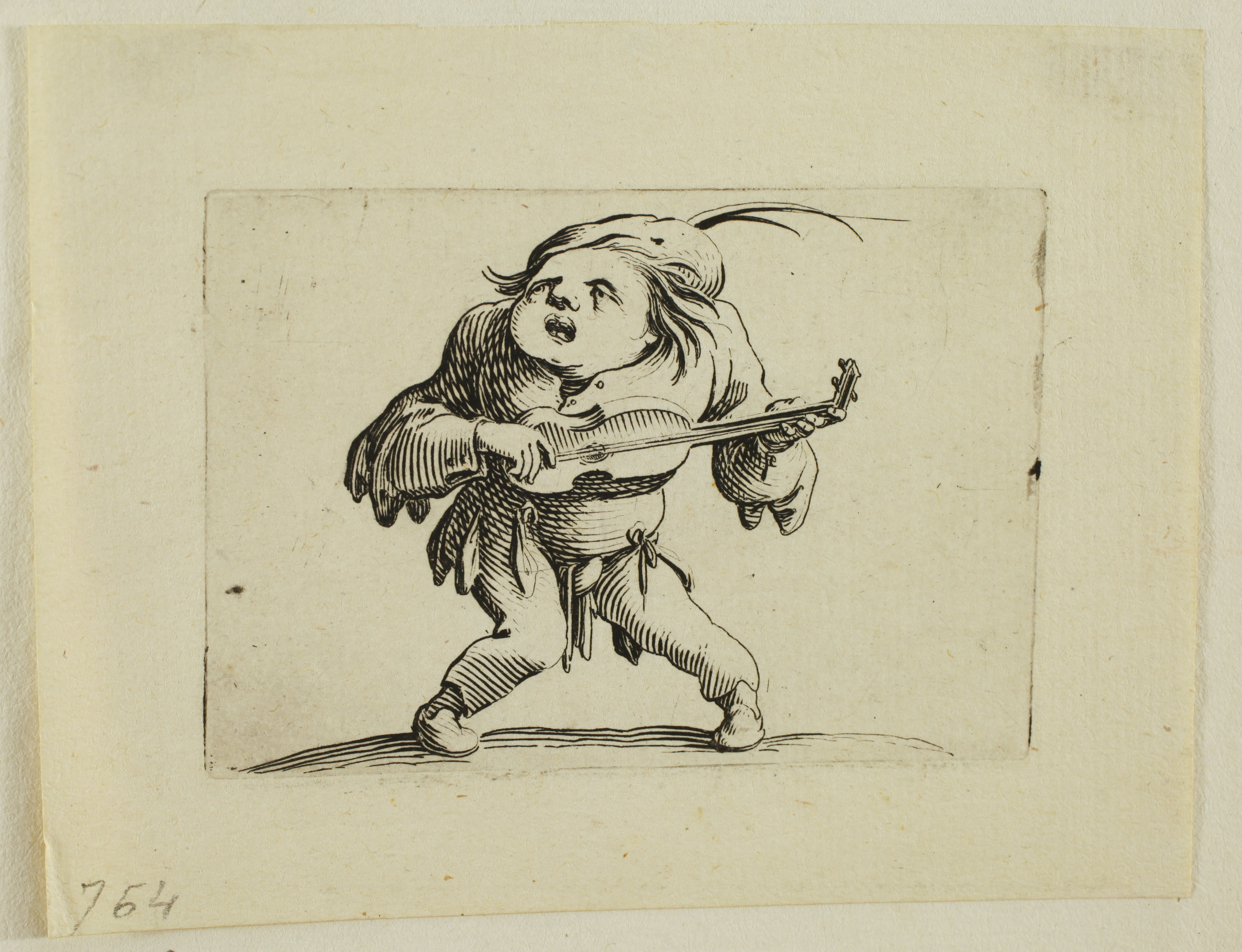 Frontispice : Lieure 279, 1er état/2 avant l’adresse d’Israël Silvestre ; L’Homme s’apprêtant à tirer son sabre : L. 407, état unique ; L’Estropié au capuchon : L. 408, 1er état/2 avant la numérotation ; Le Bossu à la canne : L. 409, 1er état/2 avant la numérotation ; L’Estropié à la béquille et à la jambe de bois : L. 410, 1er état/2 avant la numérotation ; Le Buveur vu de face : L. 411 , 1er état/2 avant la numérotation ; Le Buveur vu de dos : L. 412, 1er état/3 avant que le terrain à gauche soit effacé sur un espace d’un centimètre et avant la numérotation ; Le Duelliste aux deux sabres : L. 413, 1er état/2 avant la numérotation ; Le Duelliste à l’épée et au poignard : L. 414 , 1er état/2 avant la numérotation ; L’Homme au gros ventre orné d’une rangée de boutons : L. 415, 1er état/2 avant la numérotation ; L’Homme au gros dos orné d’une rangée de boutons : L. 416, 1er état/2 avant la numérotation ; L’Homme au ventre tombant et au chapeau très élevé : L. 417, 1er état/2 avant la numérotation ; Le Joueur de violon : L. 418 , 1er état/2 avant la numérotation ; L’Homme masqué aux jambes torses : L. 419, 1er état/2 avant la numérotation ; Le Joueur de luth : L. 420, 1er état/2 avant la numérotation ; Le Joueur de vielle : L. 421, 1er état/2 avant la numérotation ; Le Joueur de flageolet : L. 422, 1er état/2 avant la numérotation ; L’Homme raclant un gril en guise de violon : L. 423 , 1er état/2 avant la numérotation ; Le Joueur de cornemuse : L. 424, 1er état/2 avant la numérotation ; Le Comédien masqué jouant de la guitare : L. 425, 1er état/2 avant la numérotation ; Le Bancal jouant de la guitare : L. 426, 1er état/2 avant la numérotation.