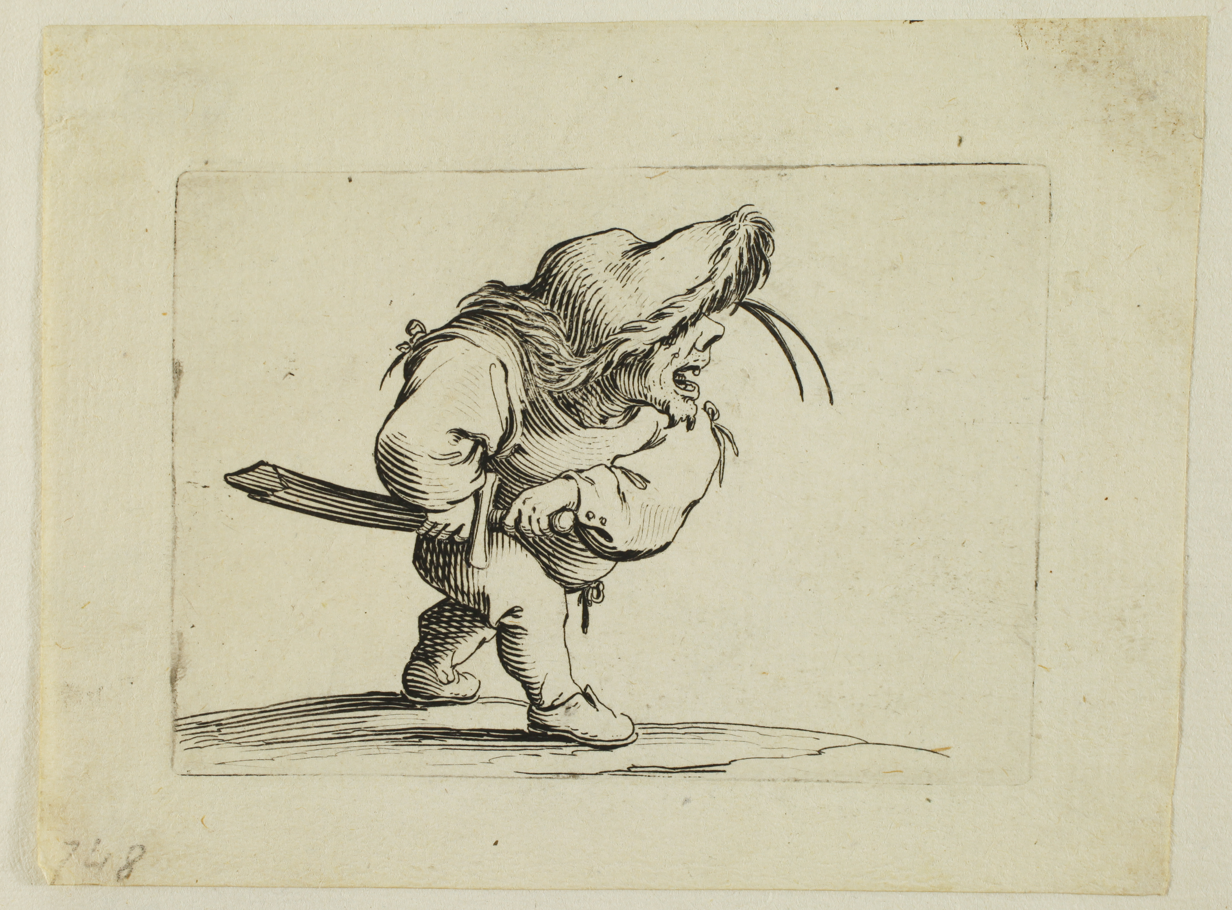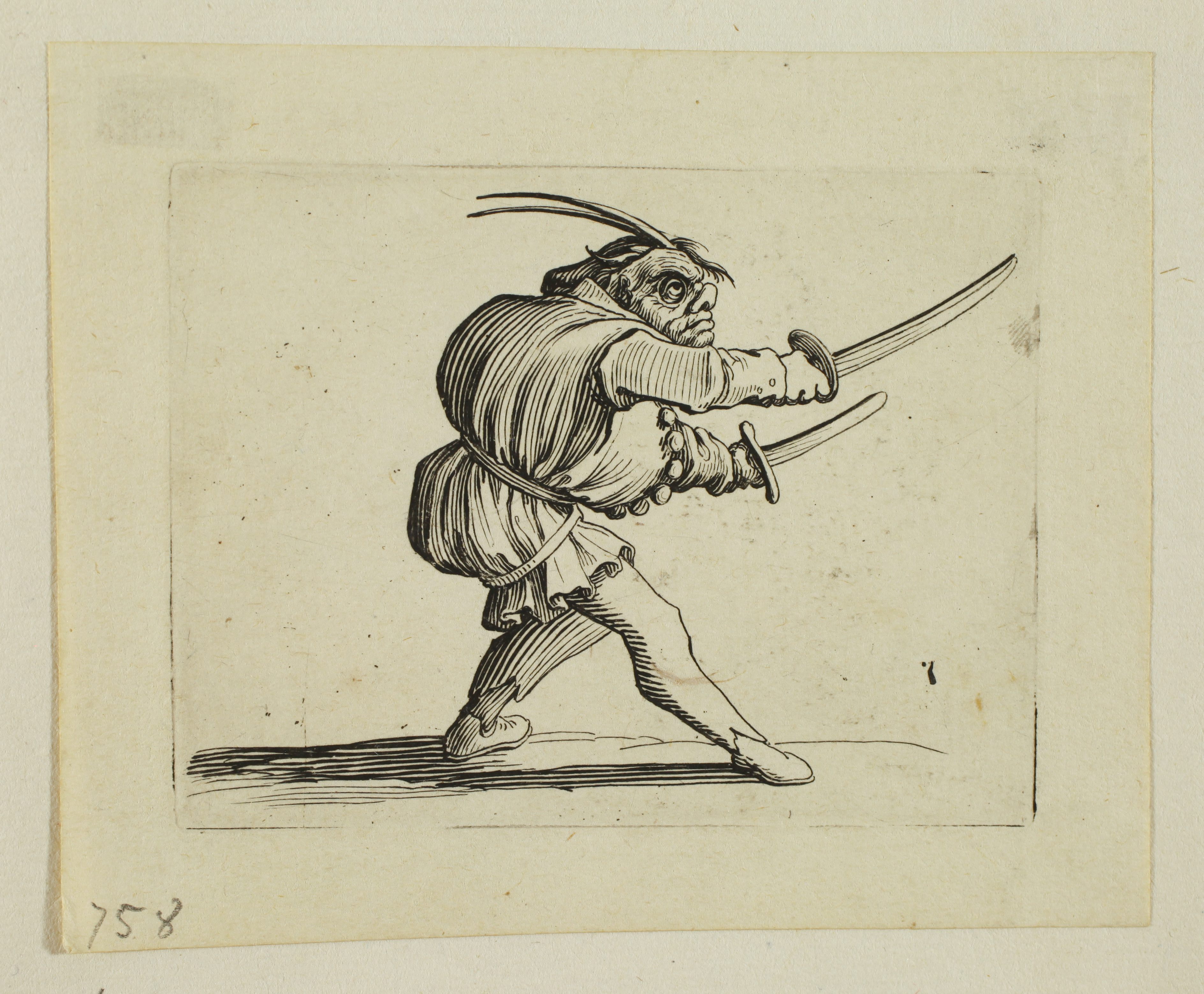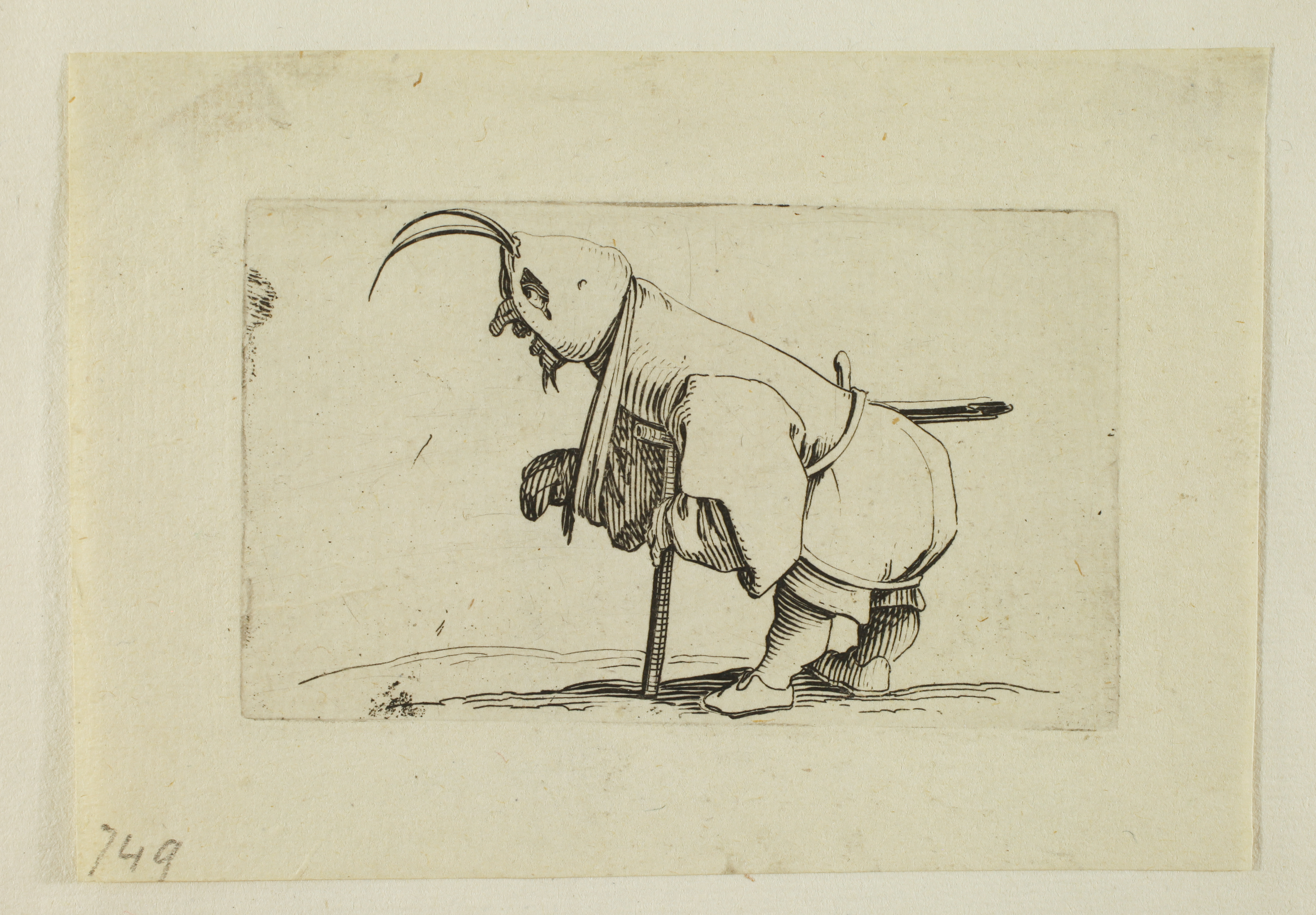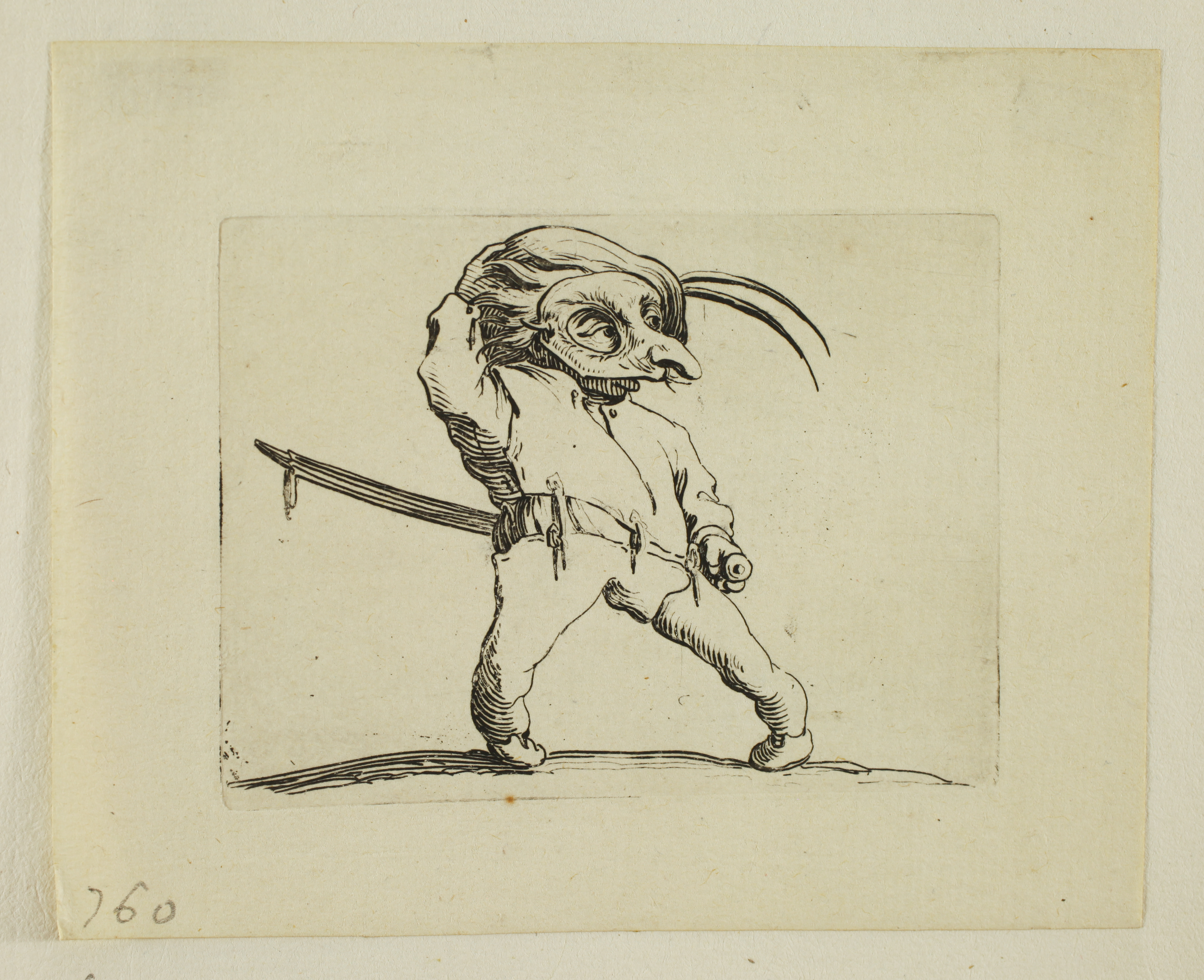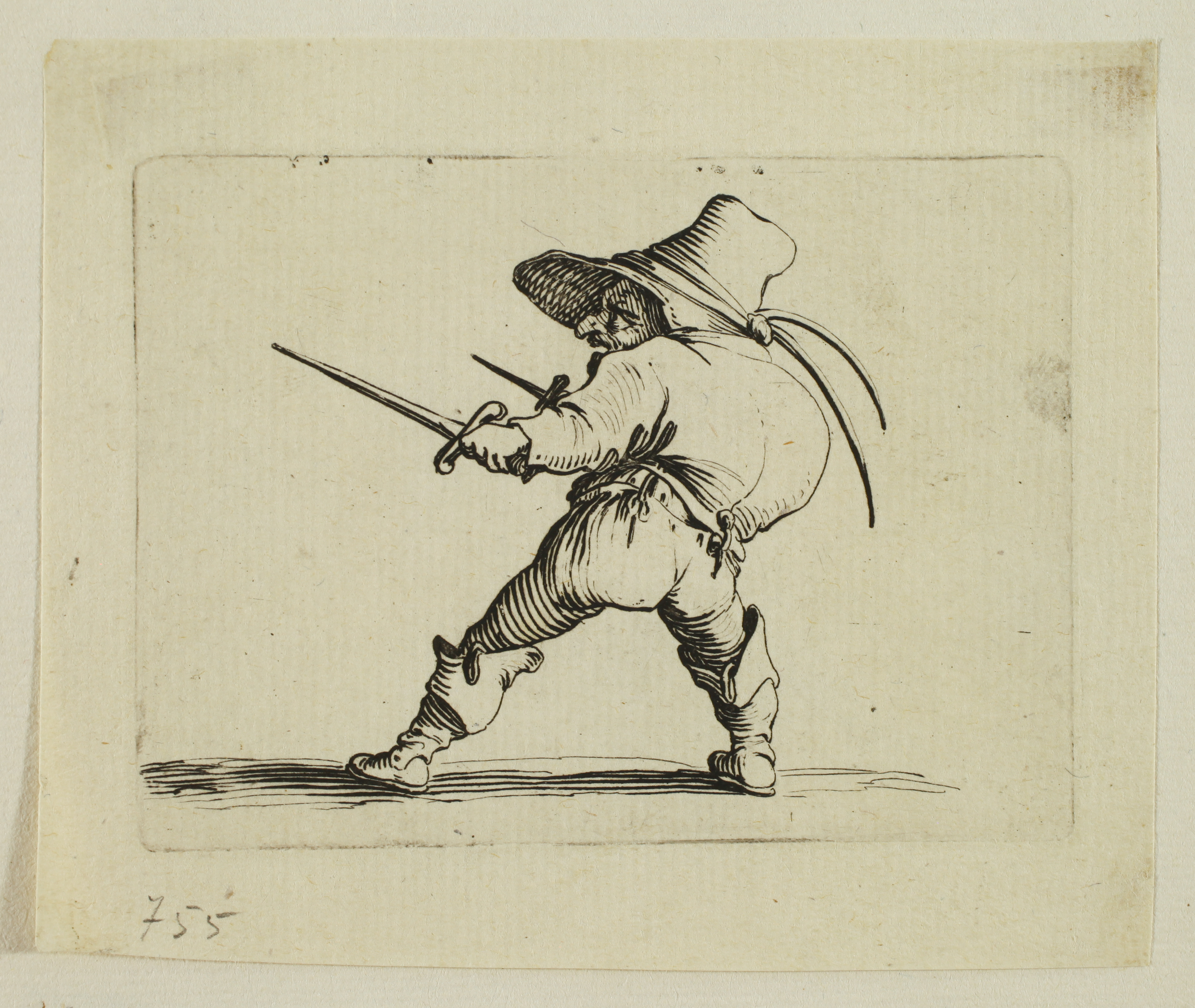 Frontispice : Lieure 279, 1er état/2 avant l’adresse d’Israël Silvestre ; L’Homme s’apprêtant à tirer son sabre : L. 407, état unique ; L’Estropié au capuchon : L. 408, 1er état/2 avant la numérotation ; Le Bossu à la canne : L. 409, 1er état/2 avant la numérotation ; L’Estropié à la béquille et à la jambe de bois : L. 410, 1er état/2 avant la numérotation ; Le Buveur vu de face : L. 411 , 1er état/2 avant la numérotation ; Le Buveur vu de dos : L. 412, 1er état/3 avant que le terrain à gauche soit effacé sur un espace d’un centimètre et avant la numérotation ; Le Duelliste aux deux sabres : L. 413, 1er état/2 avant la numérotation ; Le Duelliste à l’épée et au poignard : L. 414 , 1er état/2 avant la numérotation ; L’Homme au gros ventre orné d’une rangée de boutons : L. 415, 1er état/2 avant la numérotation ; L’Homme au gros dos orné d’une rangée de boutons : L. 416, 1er état/2 avant la numérotation ; L’Homme au ventre tombant et au chapeau très élevé : L. 417, 1er état/2 avant la numérotation ; Le Joueur de violon : L. 418 , 1er état/2 avant la numérotation ; L’Homme masqué aux jambes torses : L. 419, 1er état/2 avant la numérotation ; Le Joueur de luth : L. 420, 1er état/2 avant la numérotation ; Le Joueur de vielle : L. 421, 1er état/2 avant la numérotation ; Le Joueur de flageolet : L. 422, 1er état/2 avant la numérotation ; L’Homme raclant un gril en guise de violon : L. 423 , 1er état/2 avant la numérotation ; Le Joueur de cornemuse : L. 424, 1er état/2 avant la numérotation ; Le Comédien masqué jouant de la guitare : L. 425, 1er état/2 avant la numérotation ; Le Bancal jouant de la guitare : L. 426, 1er état/2 avant la numérotation.