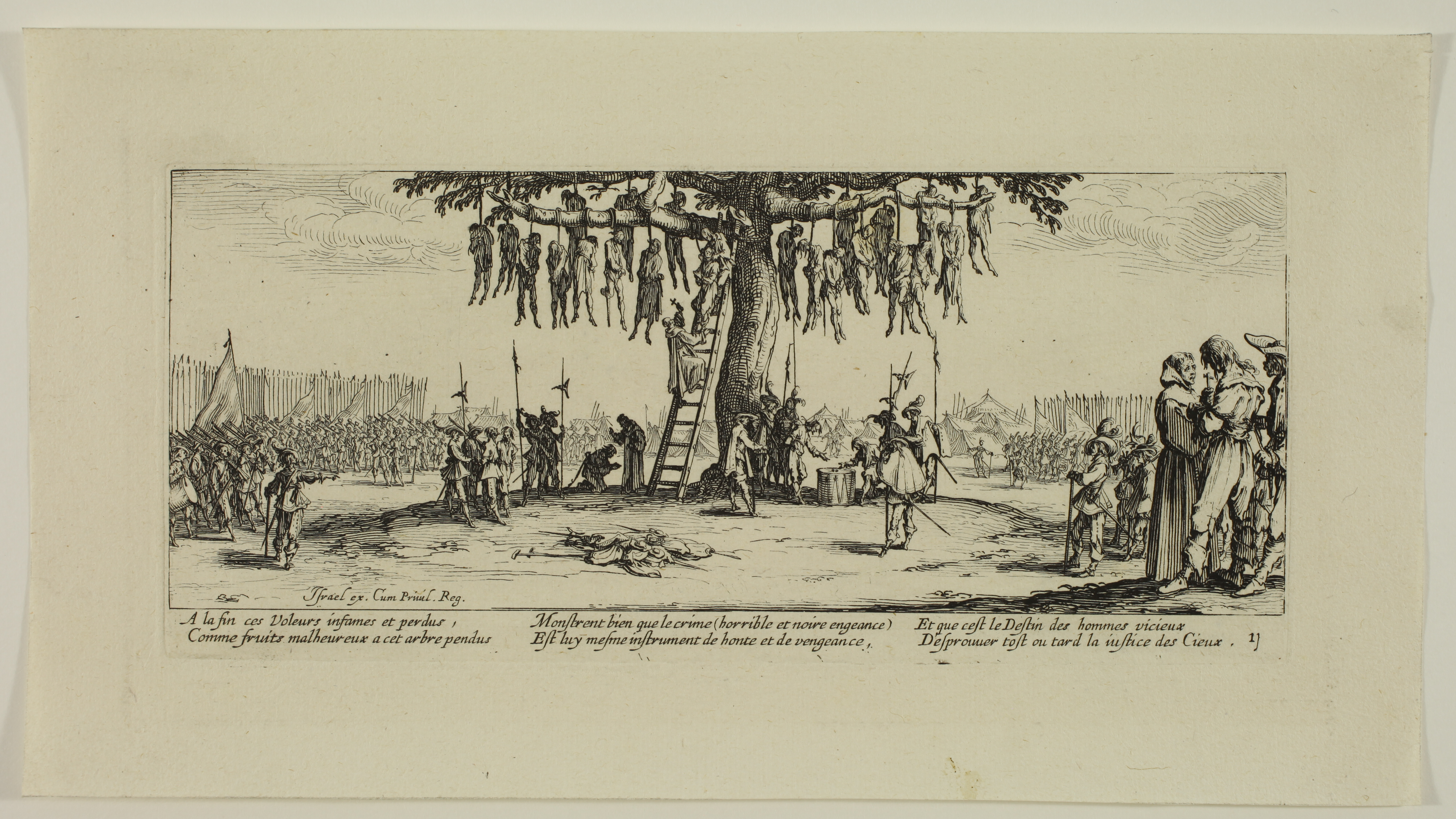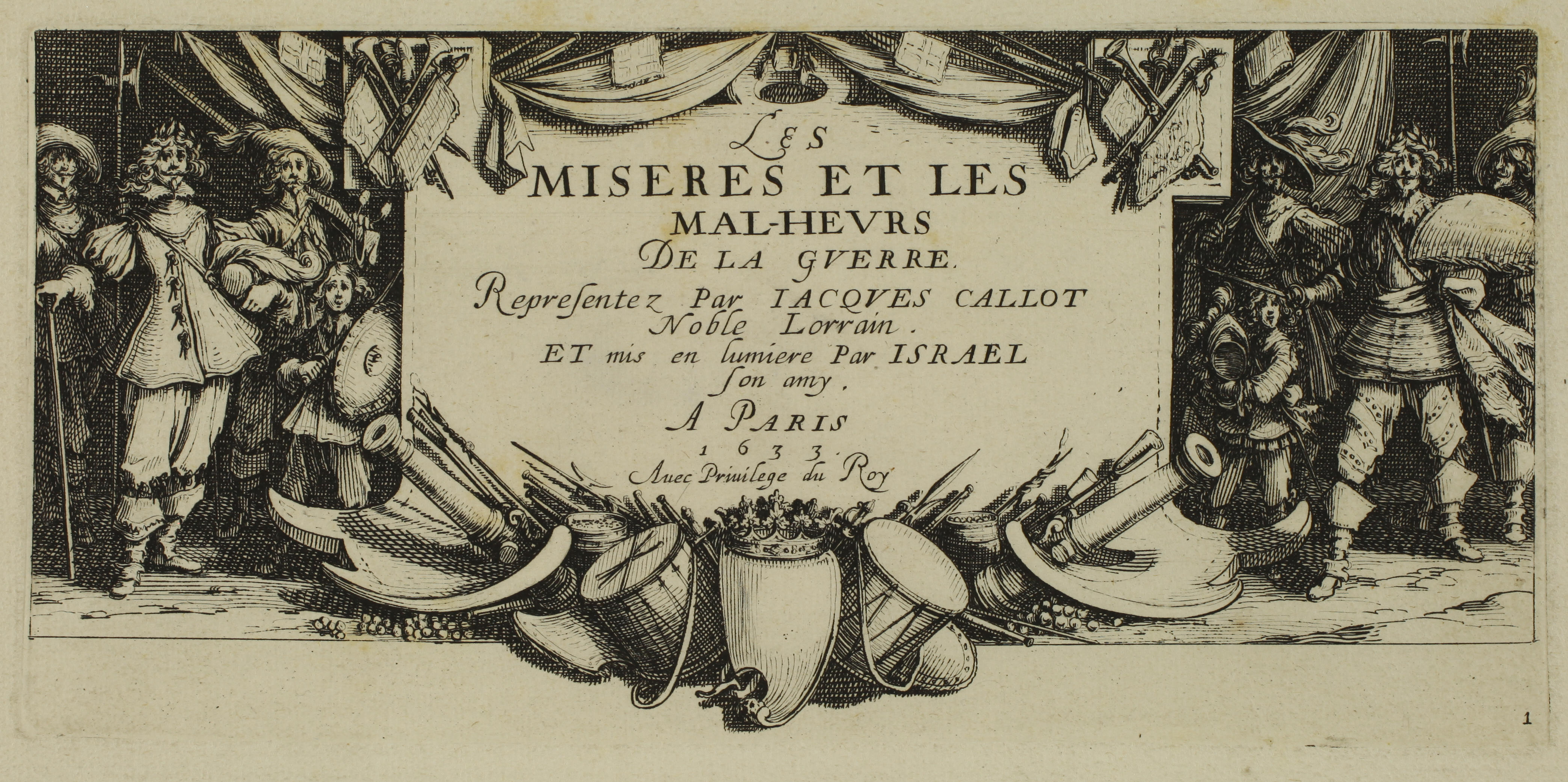 Références : Jules Lieure : Jacques Callot : Catalogue de L'Œuvre Gravé, vol. 2, éditions de la Gazette des Beaux-Arts, 1927 ; Maxime Préaud, Marianne Grivel, Pierre Casselle, et Corinne Le Bitouzé : Dictionnaire des éditeurs d’estampes à Paris sous l’Ancien Régime, 1987 ; Paulette Choné : « Les misères de la guerre, ou « la vie du soldat » : la force et le droit », in Jacques Callot, catalogue de l’exposition au Musée historique lorrain, à Nancy, 13 juin-14 septembre 1992 ; Marie Richard : Jacques Callot, Une œuvre en son temps, Les Misères et les Mal-heurs de la guerre, 1633, Nantes, 1992 ; James Clifton et Leslie M. Scatone : The plains of Mars: European war prints, 1500-1825, from the collection of the Sarah Campbell Blaffer Foundation, 2009.